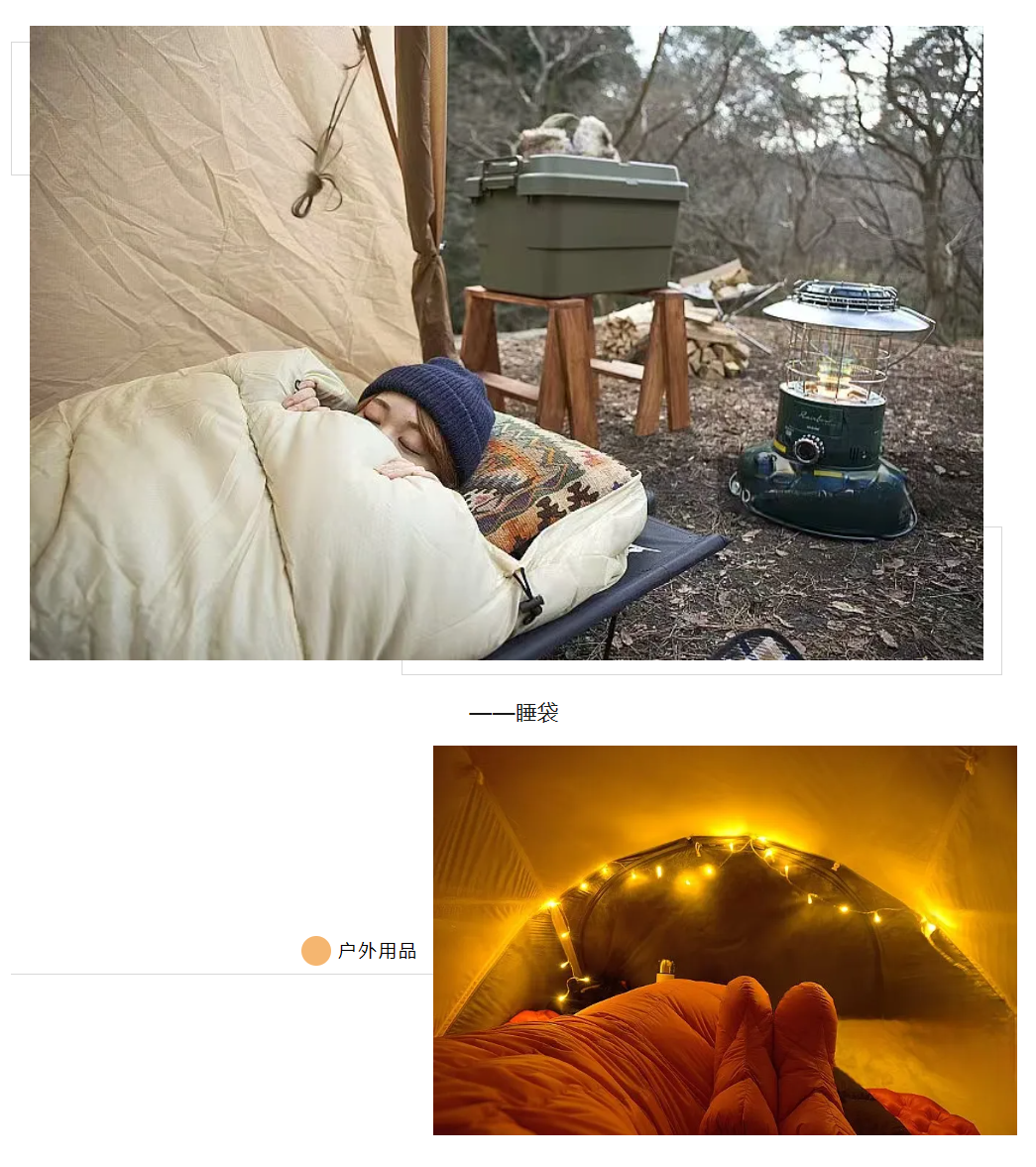 *戶外用品如戶外帳篷、睡袋等,為戶外運動愛好者在惡劣環境中提供保障。
